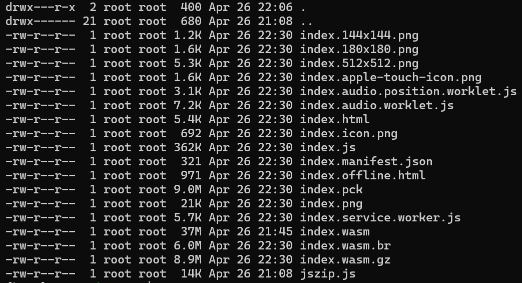 但Godot的通病就是导出文件比较大。这个H5导出后有70多MB,一个wasm文件都47MB。这对于一个网页有点灾难。